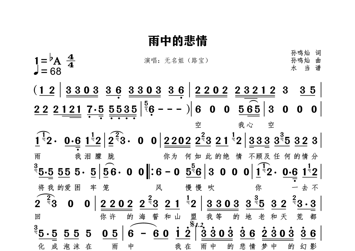 无名姐(路宝)《雨中的悲情》简谱