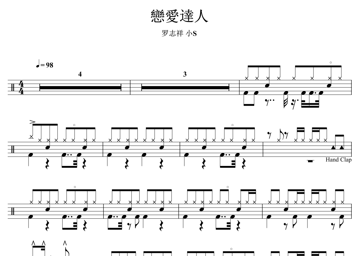 恋爱达人架子鼓谱 - 罗志祥&徐熙娣演唱