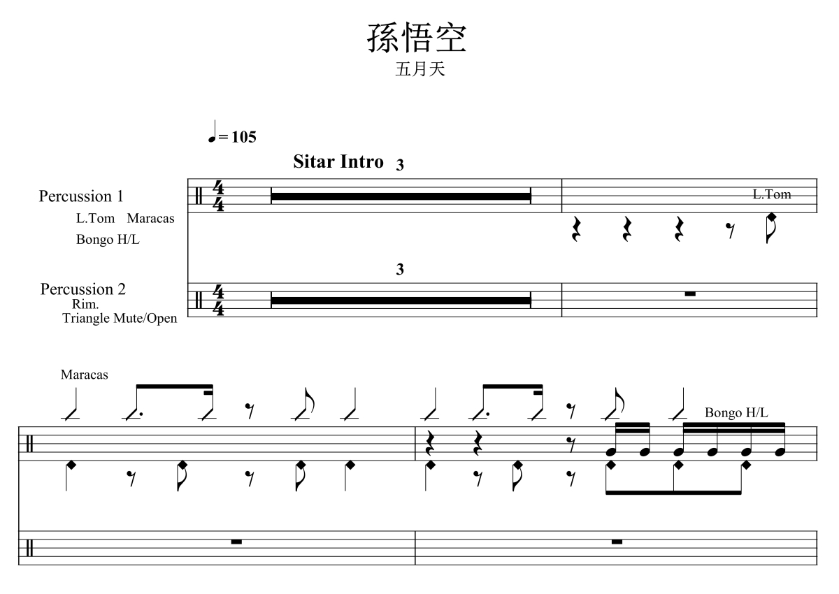 《孙悟空》是五月天演唱的一首歌曲,拍号为4/4拍,歌曲速度为每分钟105拍,这份架子鼓谱共有六张高清图谱,图谱由 @音符喷血者 编配上传,图谱使用五线谱编配,使用这份孙悟空架子鼓谱,你将能够轻松地敲打出这首五月天的孙悟空,快来尝试吧。
