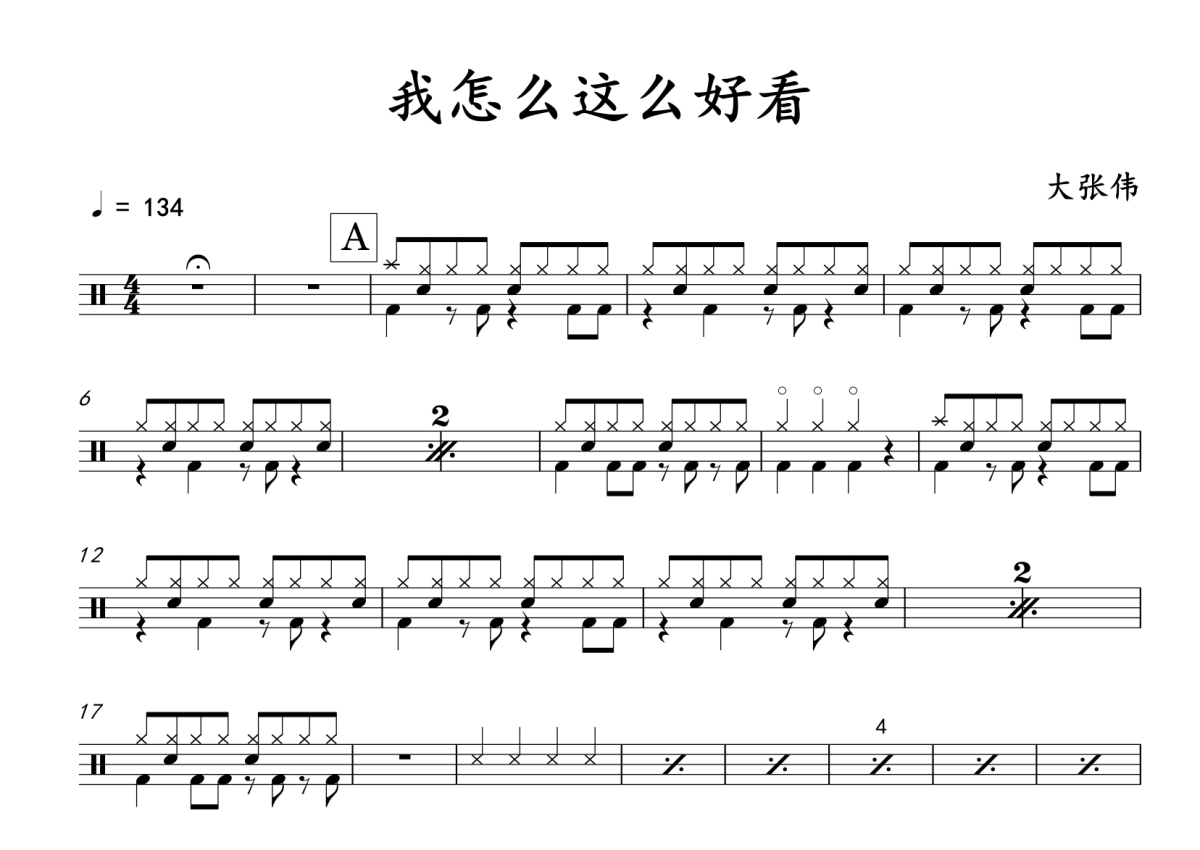 我怎么这么好看架子鼓谱 - 大张伟演唱
