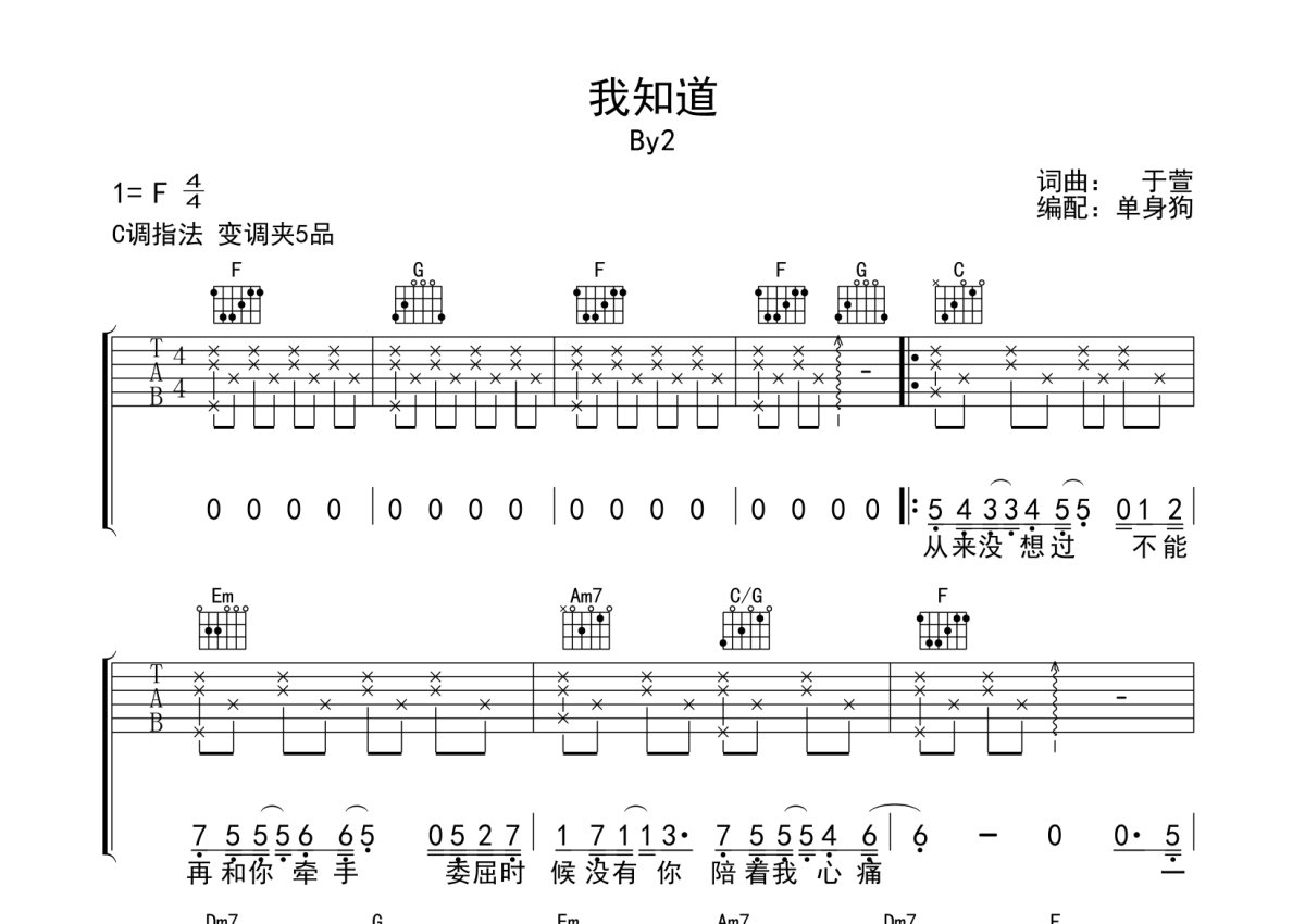 By2《我知道》吉他谱 - C调弹唱六线谱