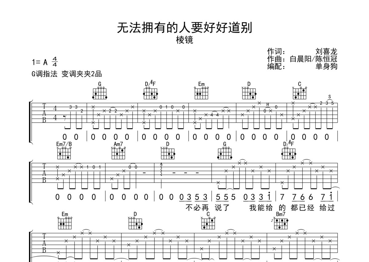 棱镜乐队《无法拥有的人要好好道别》吉他谱 - G调弹唱六线谱