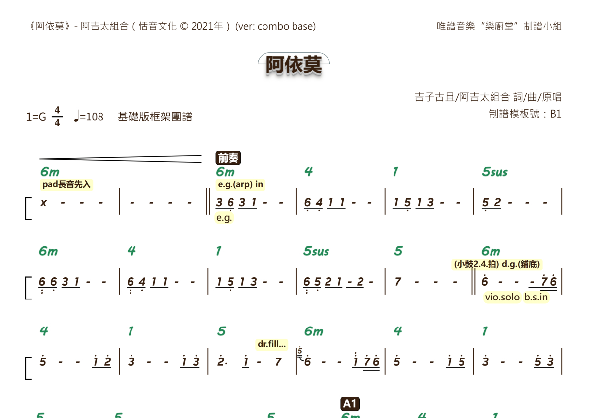 阿吉太组合《阿依莫》乐队总谱 - 基础框架版团谱