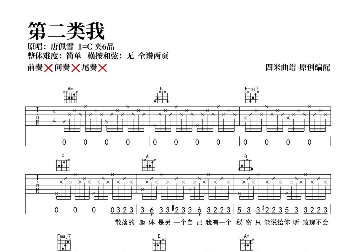 唐佩雪《第二类我》吉他谱 - C调弹唱六线谱