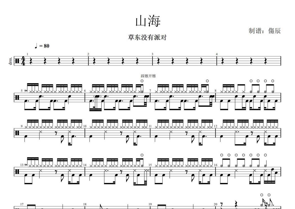 山海架子鼓谱 - 草东没有派对打鼓的蟹老板编配