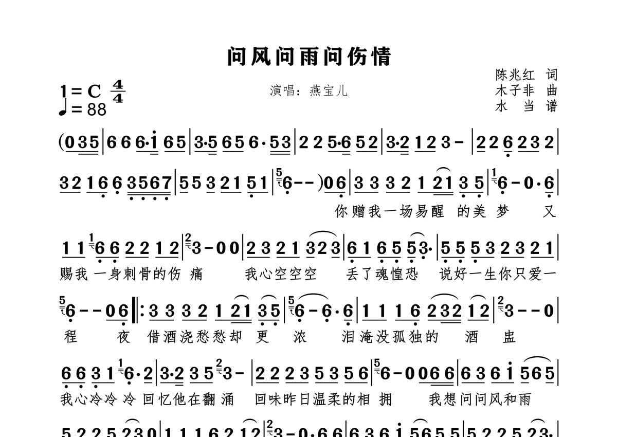 问风问雨问伤情简谱 - 燕宝儿演唱