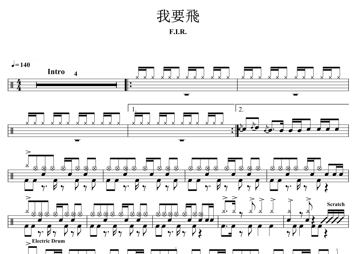 飞儿乐团《我要飞》架子鼓谱