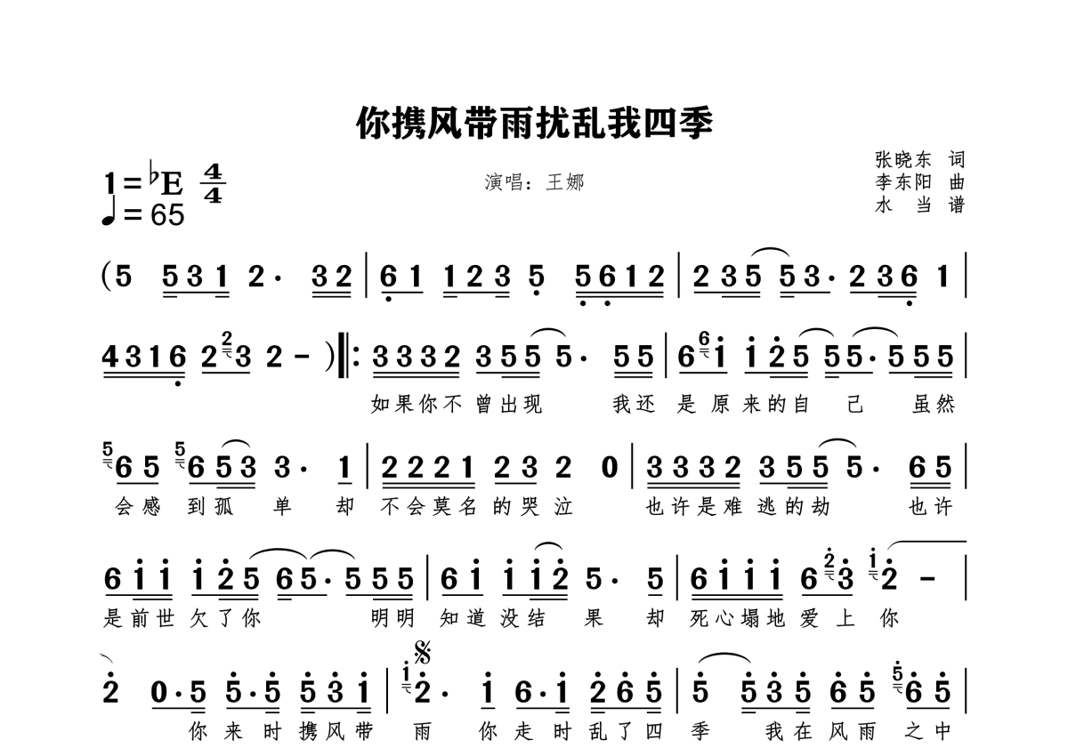 王娜《你携风带雨扰乱我四季》简谱
