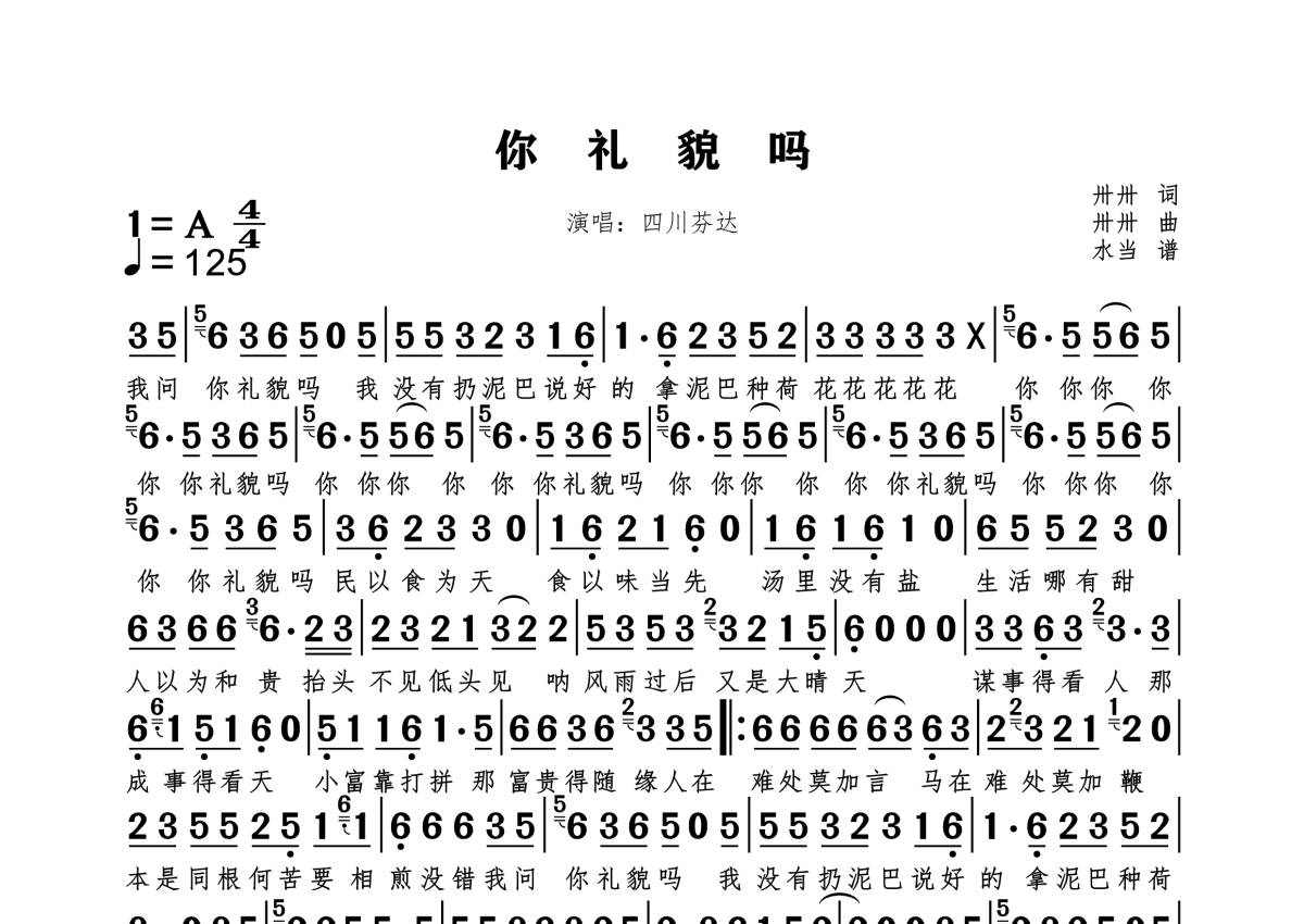 四川芬达《你礼貌吗》简谱