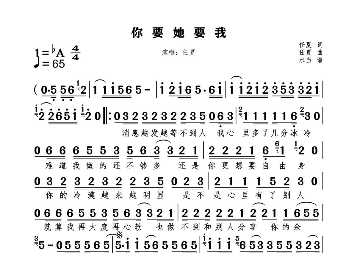 任夏《你要她要我》简谱