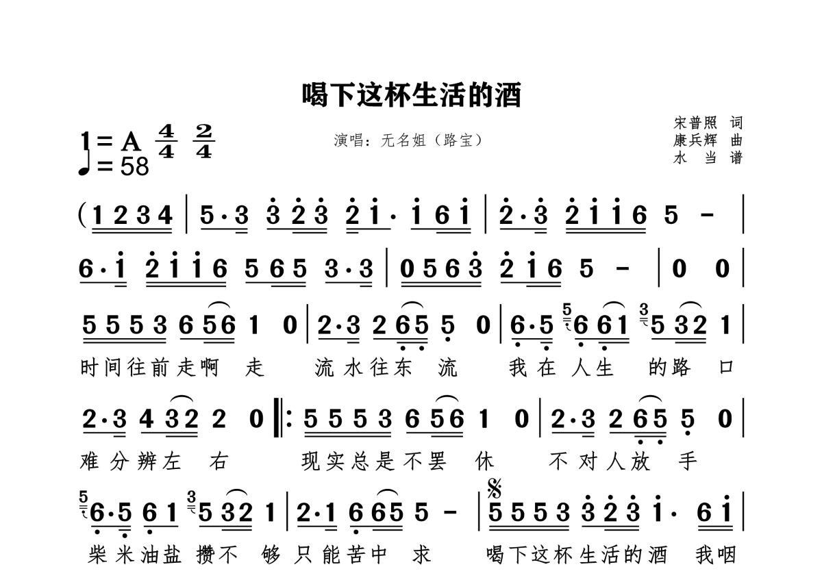 无名姐(路宝)《喝下这杯生活的酒》简谱