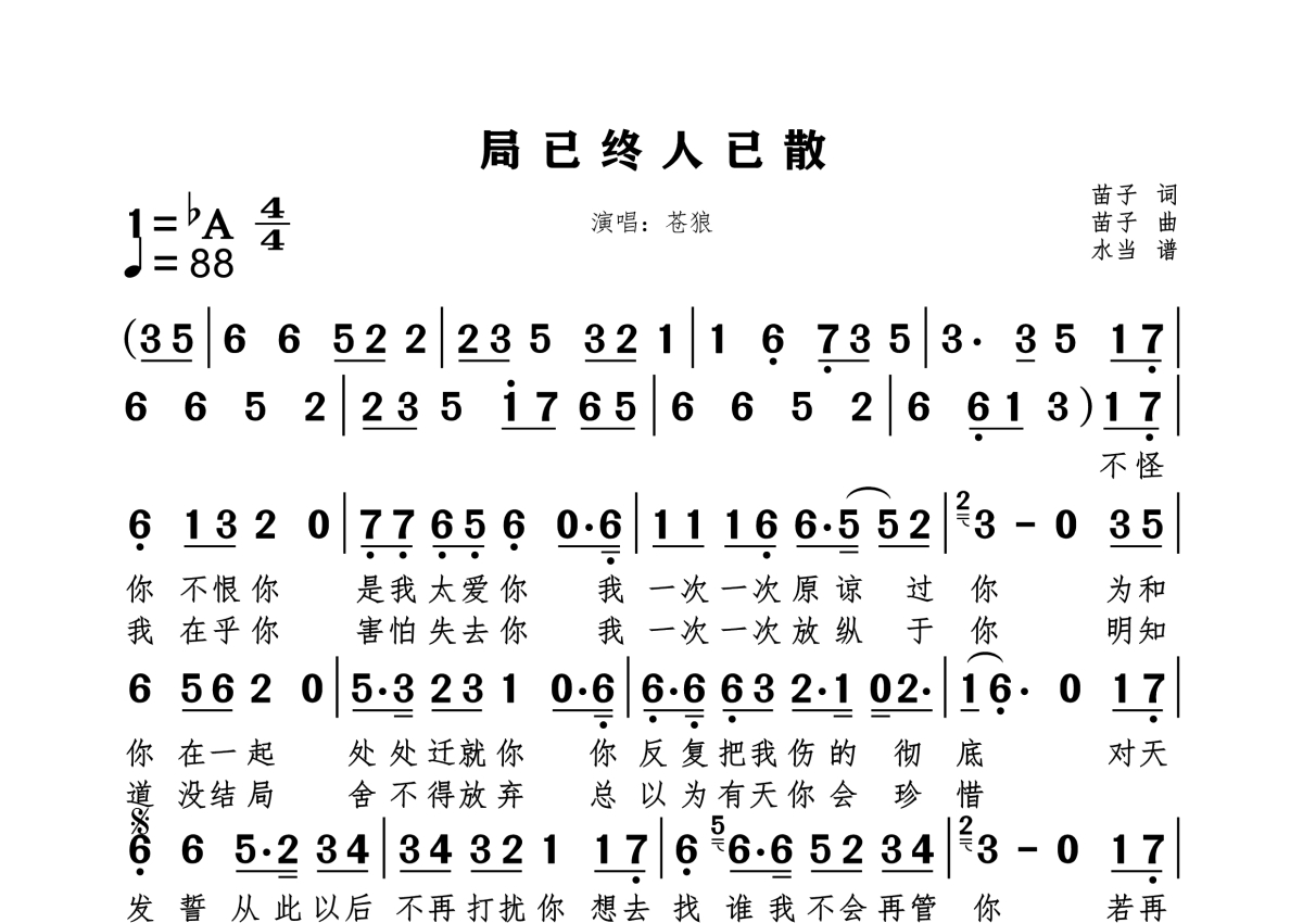 苍狼《局已终人已散》简谱