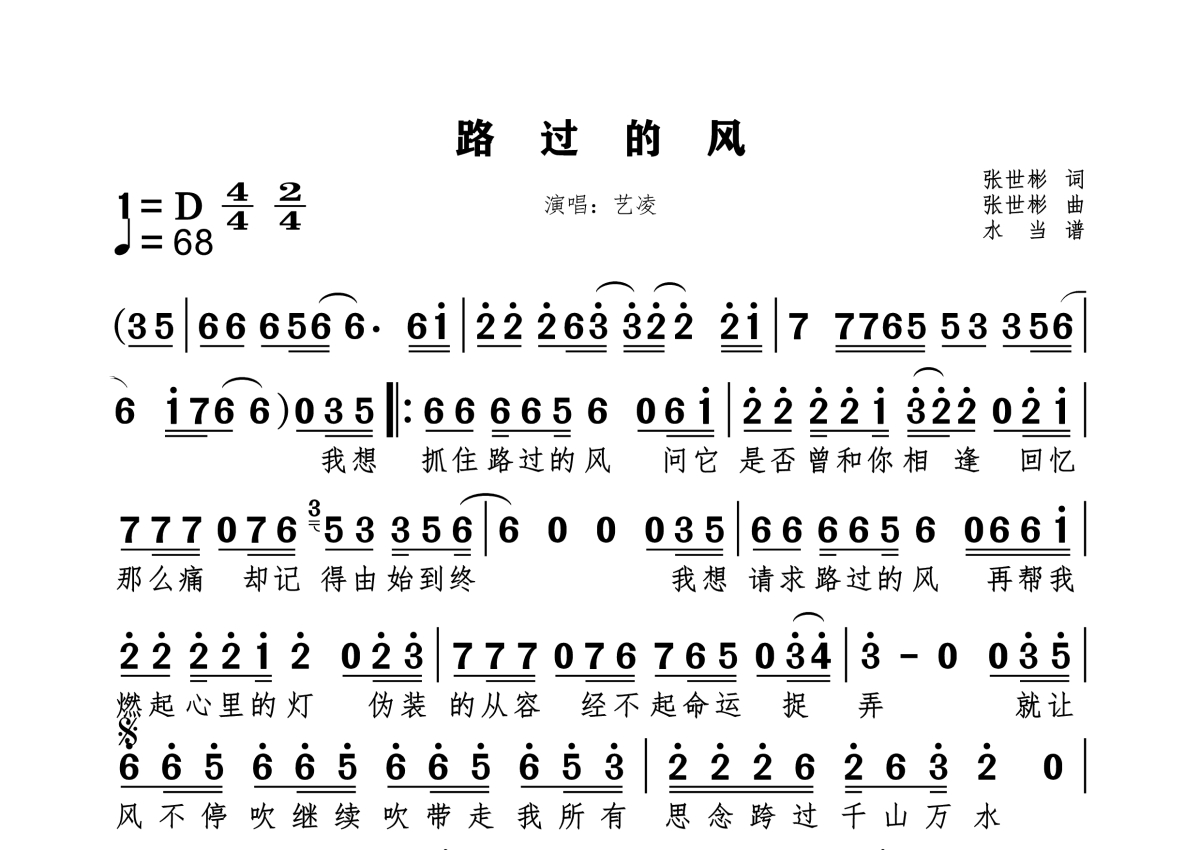 《路过的风》是艺凌演唱的一首歌曲,拍号为4/4拍,这份简谱共有一张高清图谱,图谱由 @水当 编配上传。