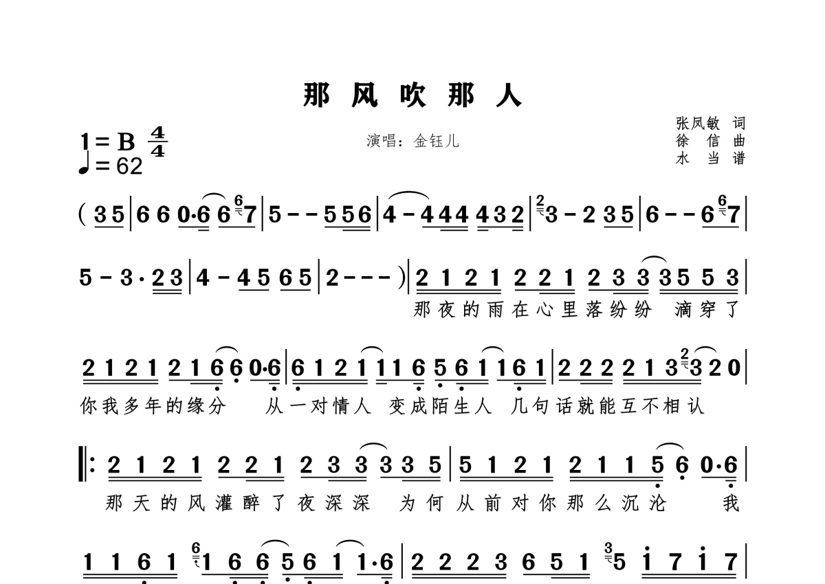 《那风吹那人》是金钰儿演唱的一首歌曲,拍号为4/4拍,这份简谱共有一张高清图谱,图谱由 @水当 编配上传。