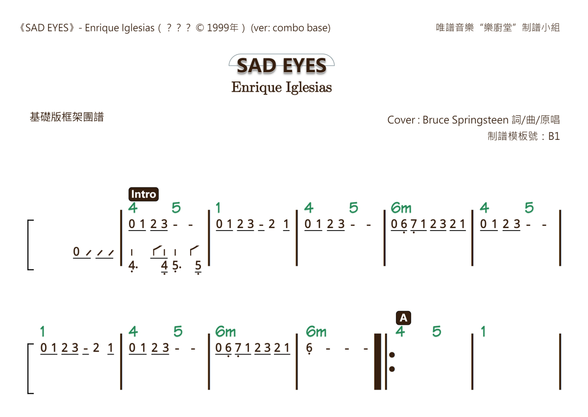 Enrique Igles《Sad Eyes》乐队总谱 - 基础框架版团谱