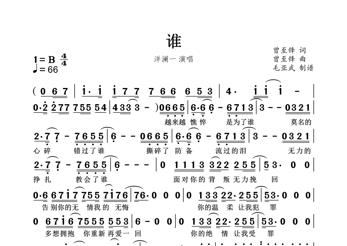 《谁》是洋澜一演唱的一首歌曲,这份简谱共有一张高清图谱,图谱由 @秋天的童话 编配上传。