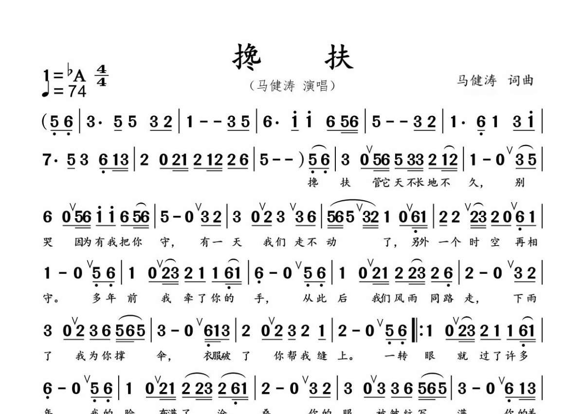《搀扶》是马健涛演唱的一首歌曲,这份简谱共有一张高清图谱,图谱由 @秋天的童话 编配上传。