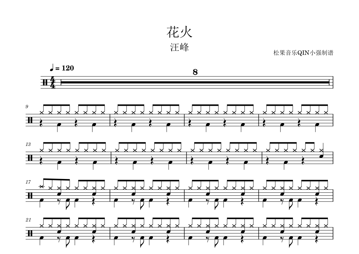 花火架子鼓谱 - 汪峰演唱