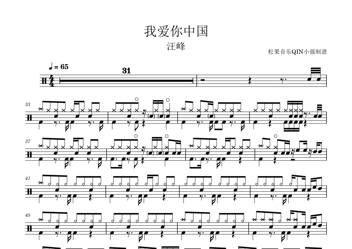 汪峰《我爱你中国》架子鼓谱