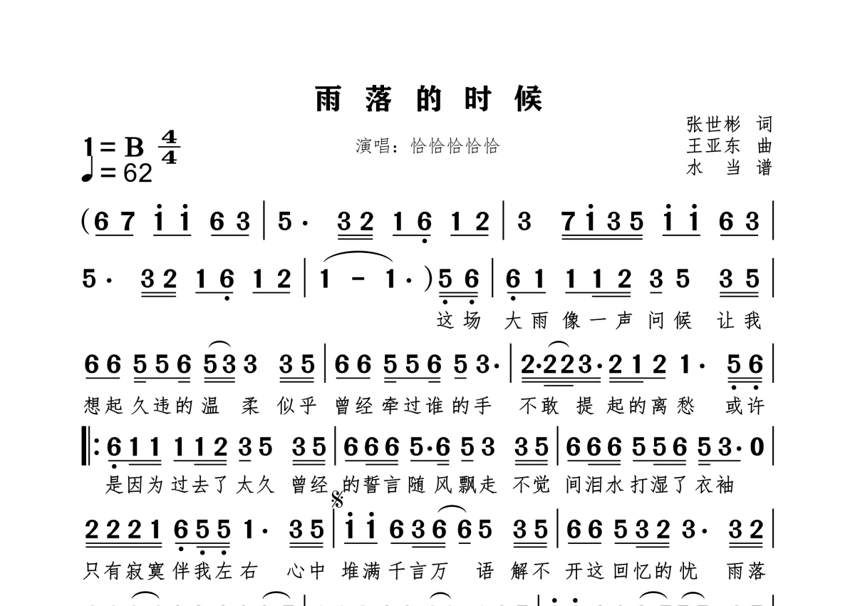 雨落的时候简谱 - 恰恰恰恰恰演唱