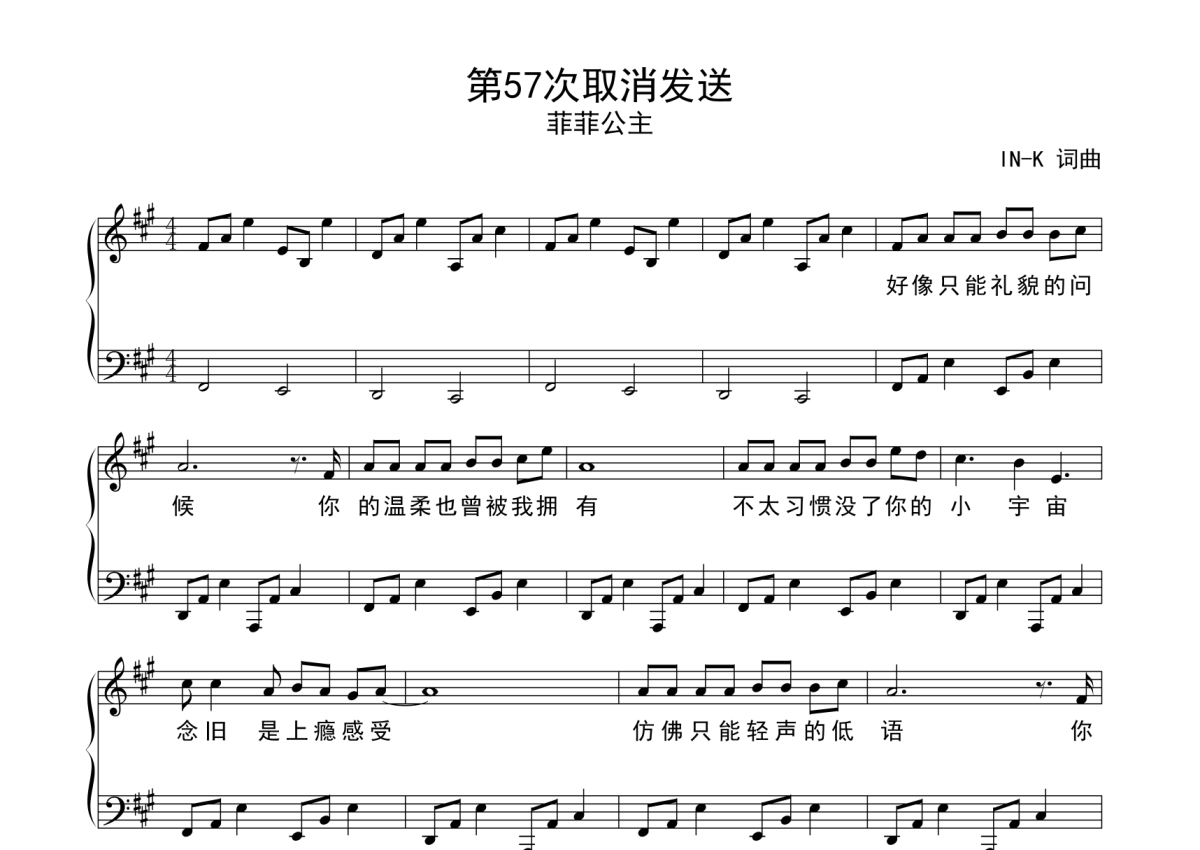 《第57次取消发送》钢琴谱 - 菲菲公主