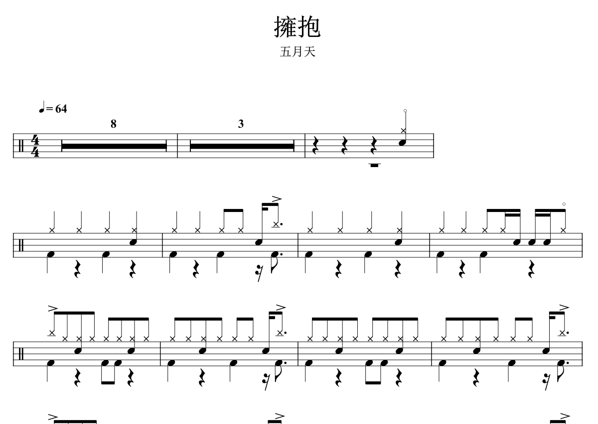 五月天《拥抱》架子鼓谱