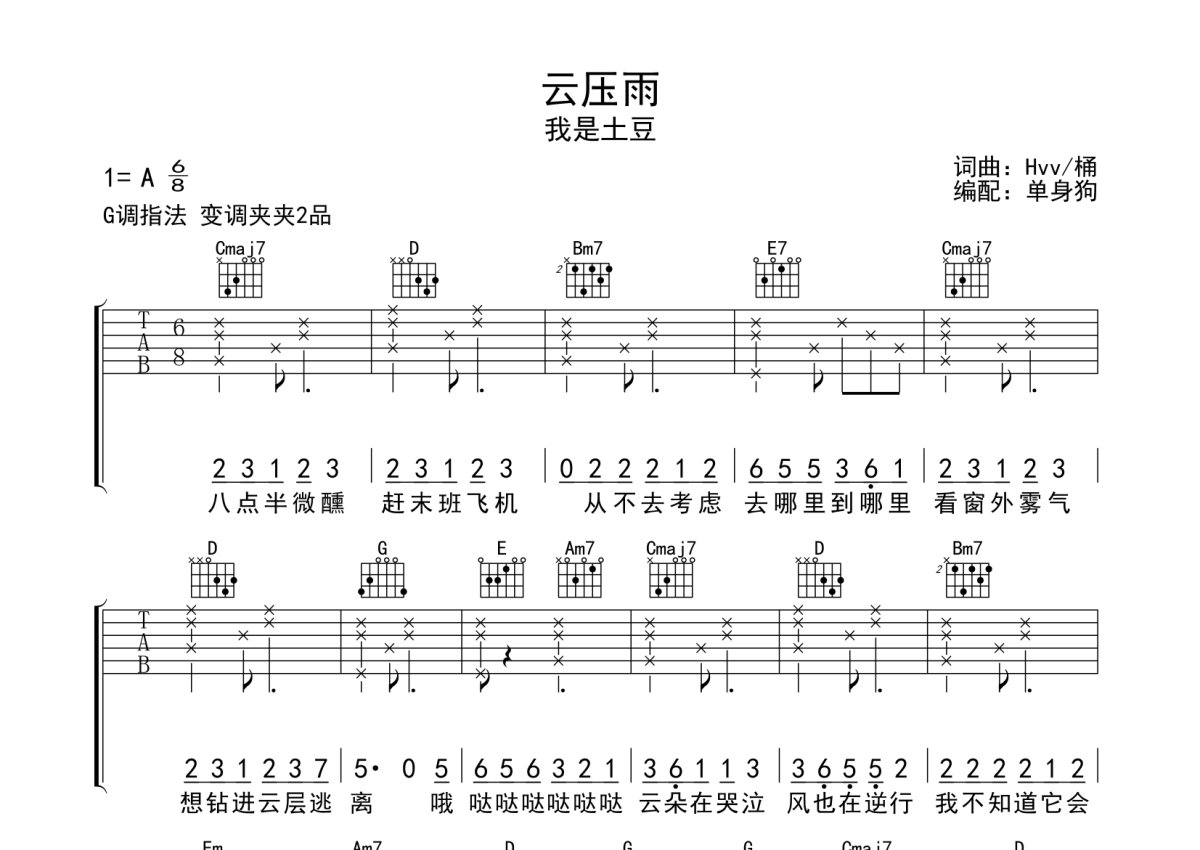 我是土豆《云压雨》吉他谱 - G调弹唱六线谱