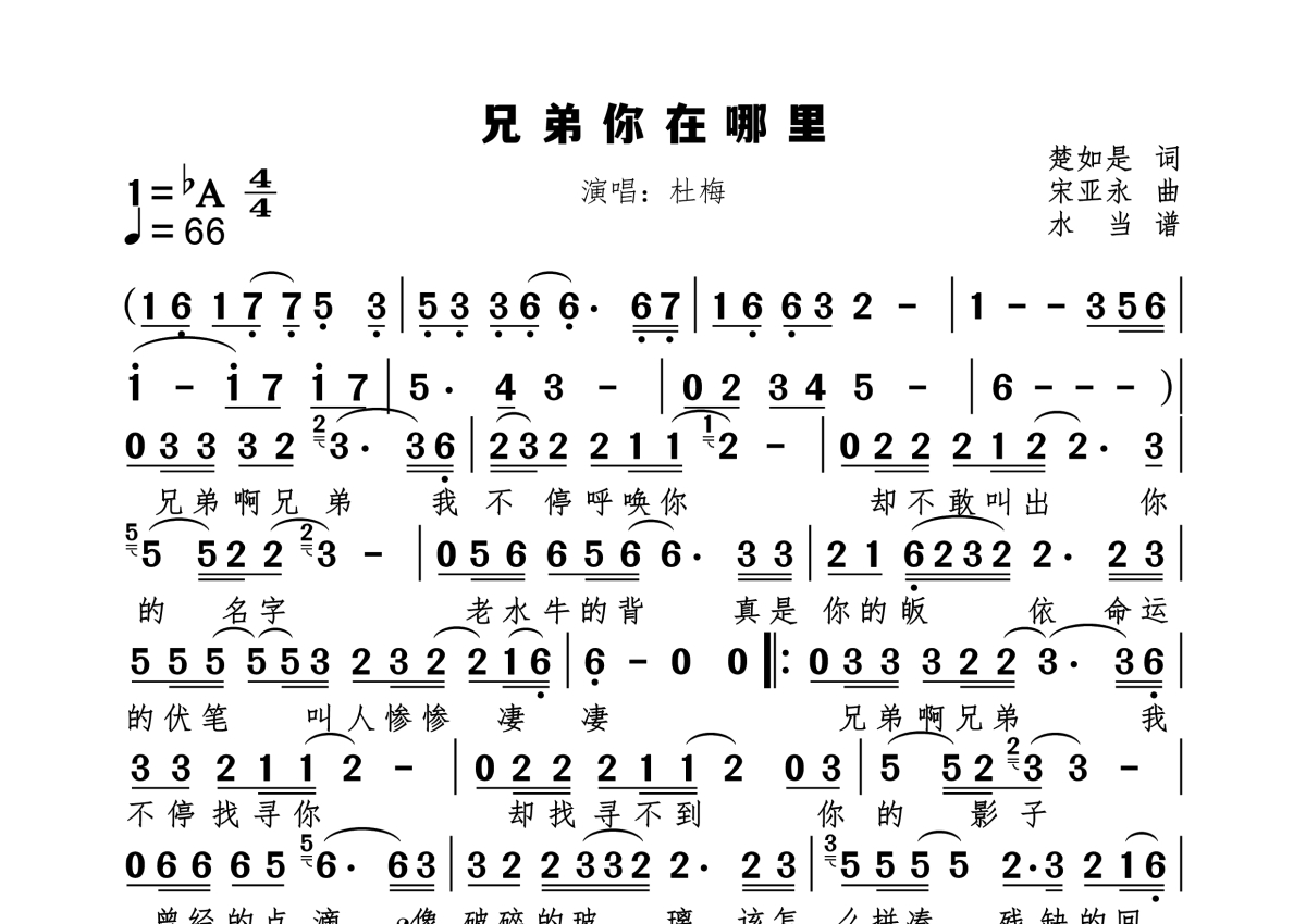 兄弟你在哪里简谱 - 杜梅演唱