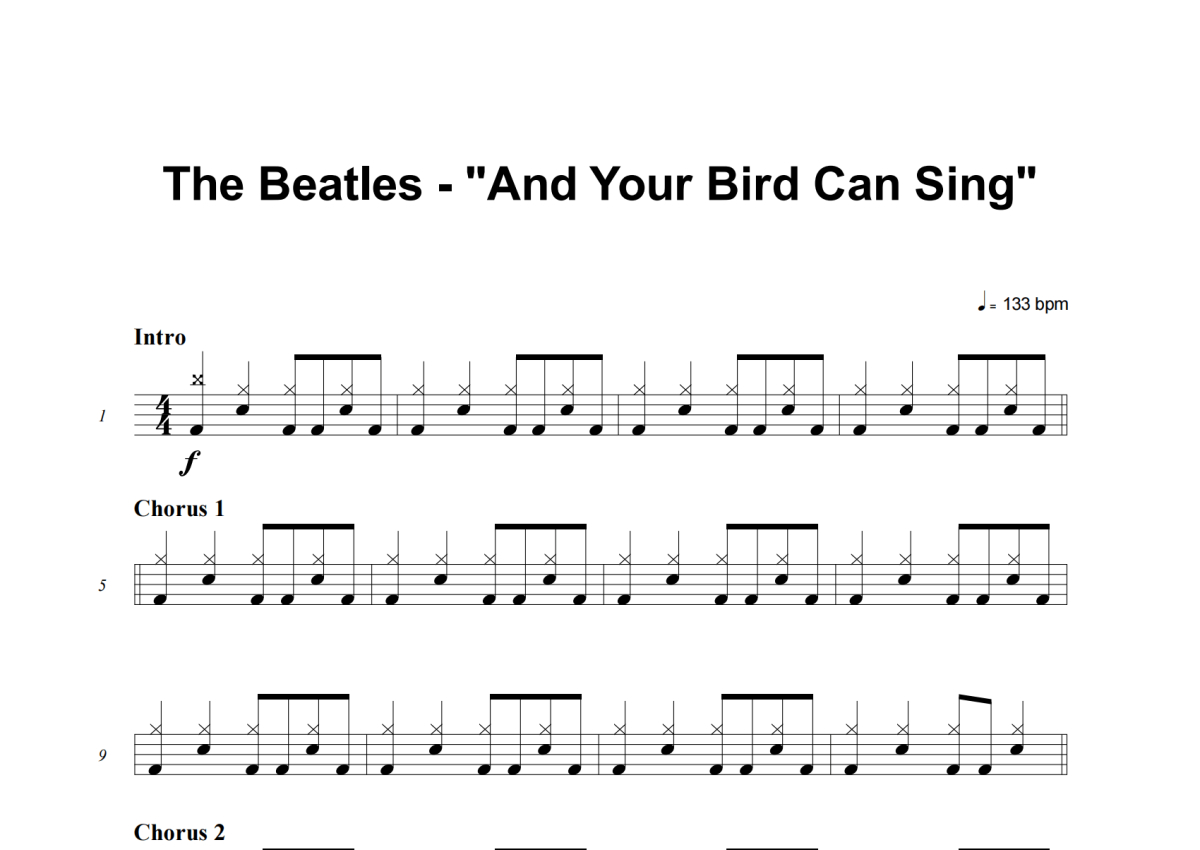 The Beatles《And Your Bird Can Sing》架子鼓谱
