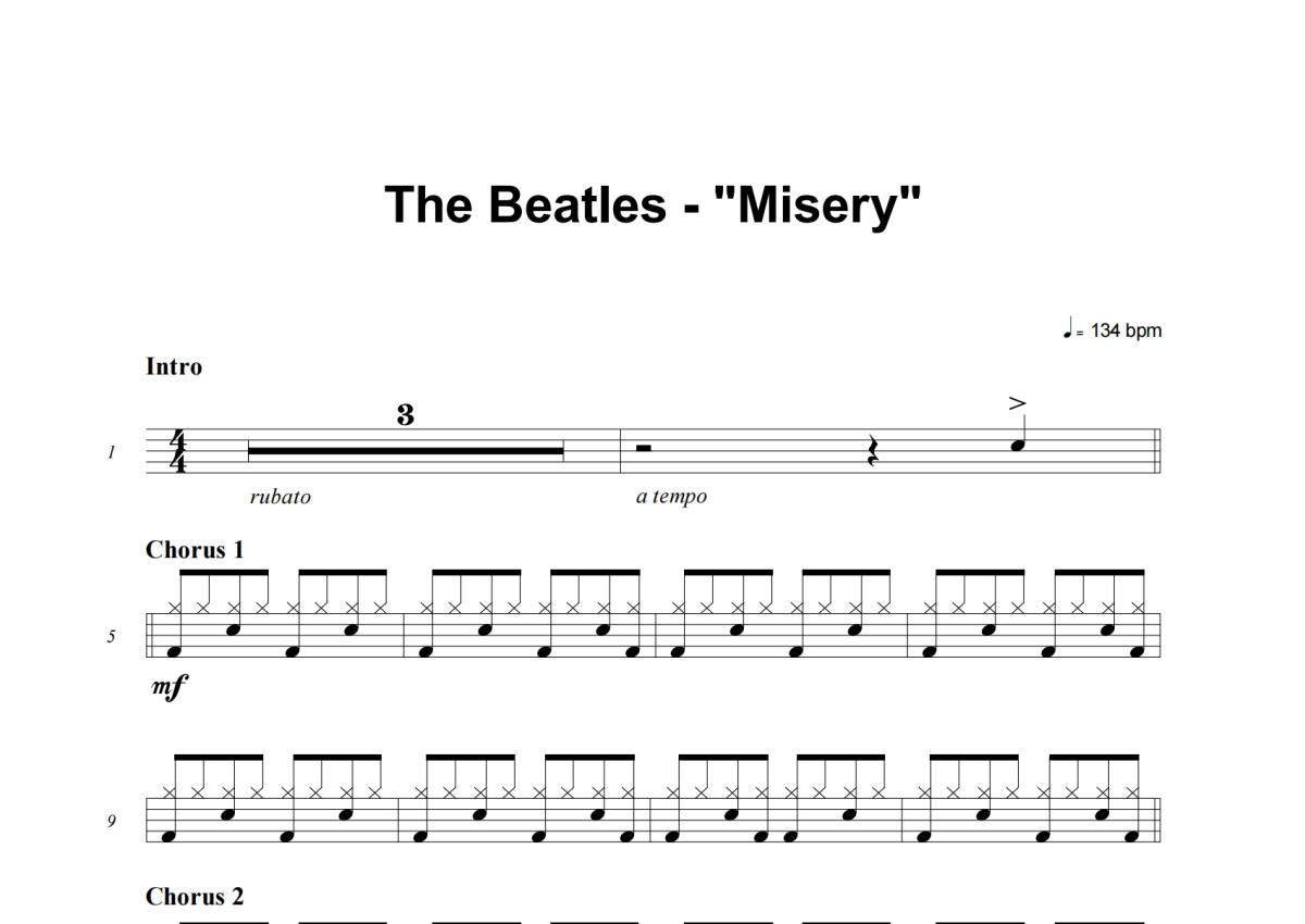 The Beatles《Misery》架子鼓谱