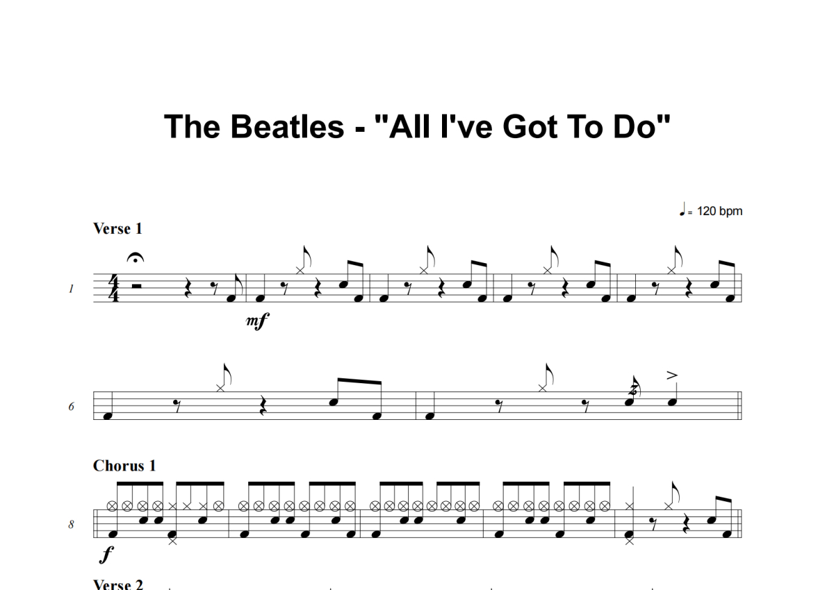 The Beatles《All I've Got To Do》架子鼓谱