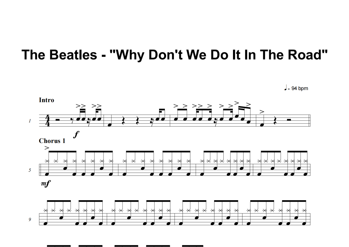 The Beatles《Why Don't We Do It In The Road》架子鼓谱