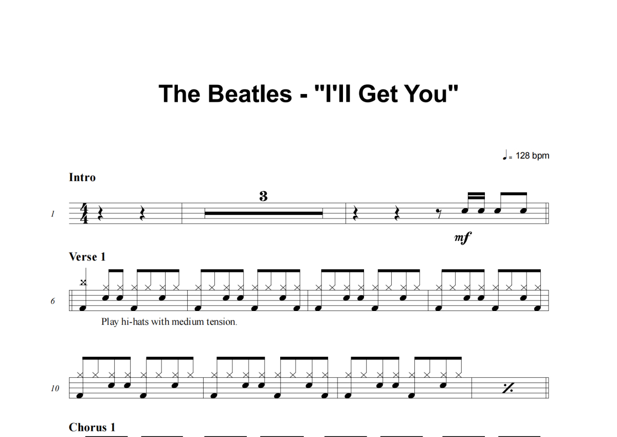 The Beatles《I'll Get You》架子鼓谱