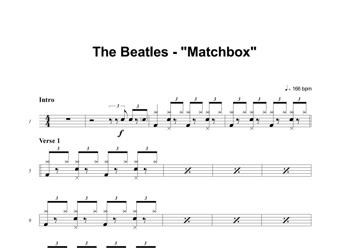 《Match Box》是The Beatles演唱的一首歌曲,这份架子鼓谱共有三张高清图谱,图谱由 @积极处世 编配上传,图谱使用五线谱编配,使用这份Match Box架子鼓谱,你将能够轻松地敲打出这首The Beatles的Match Box,快来尝试吧。