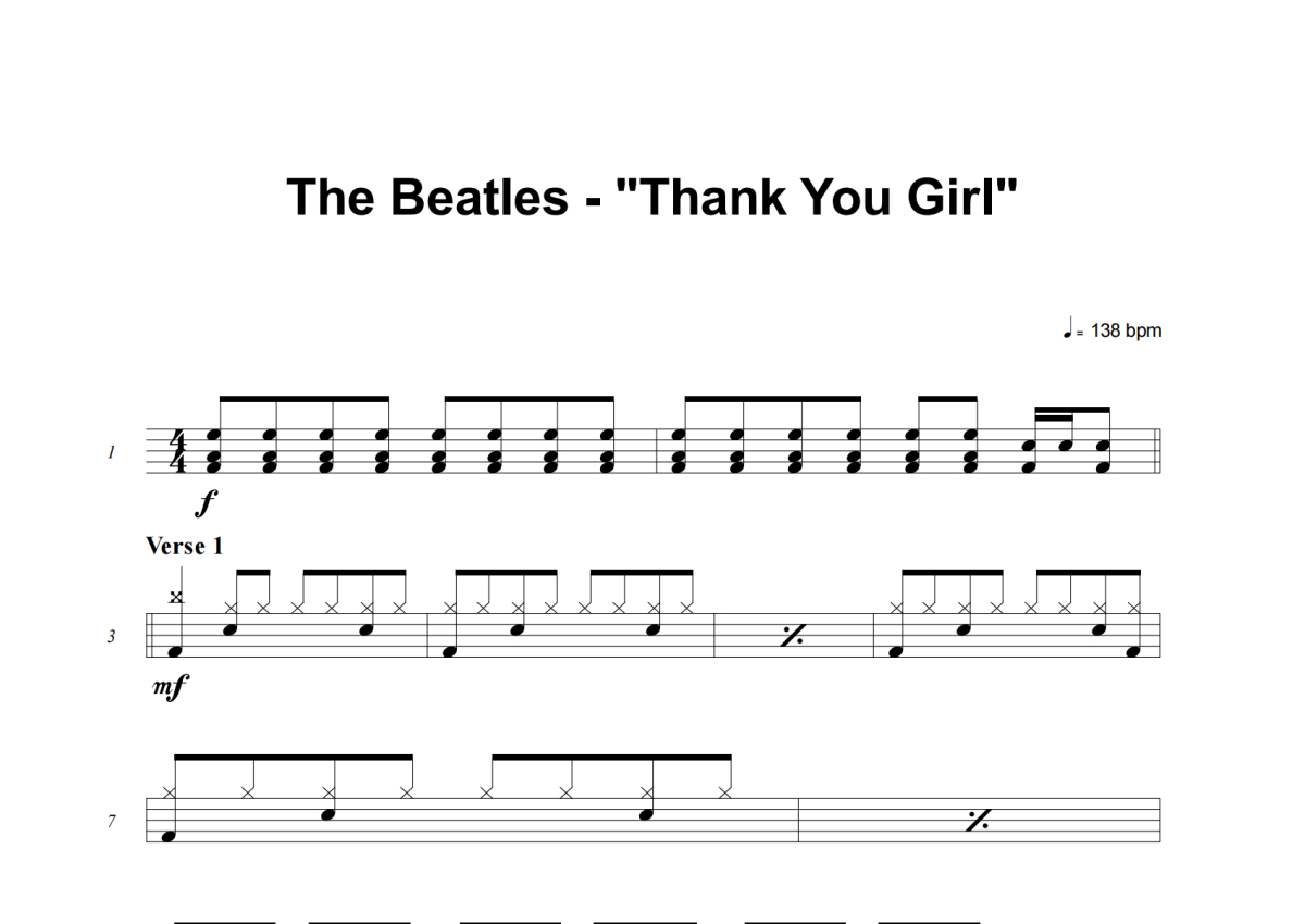 The Beatles《Thank You Girl》架子鼓谱
