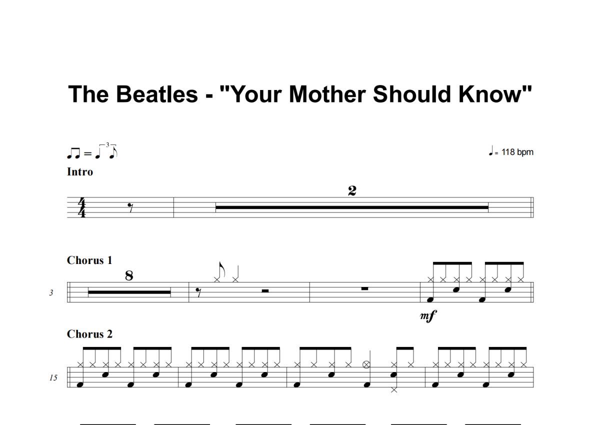 The Beatles《Your Mother Should Know》架子鼓谱