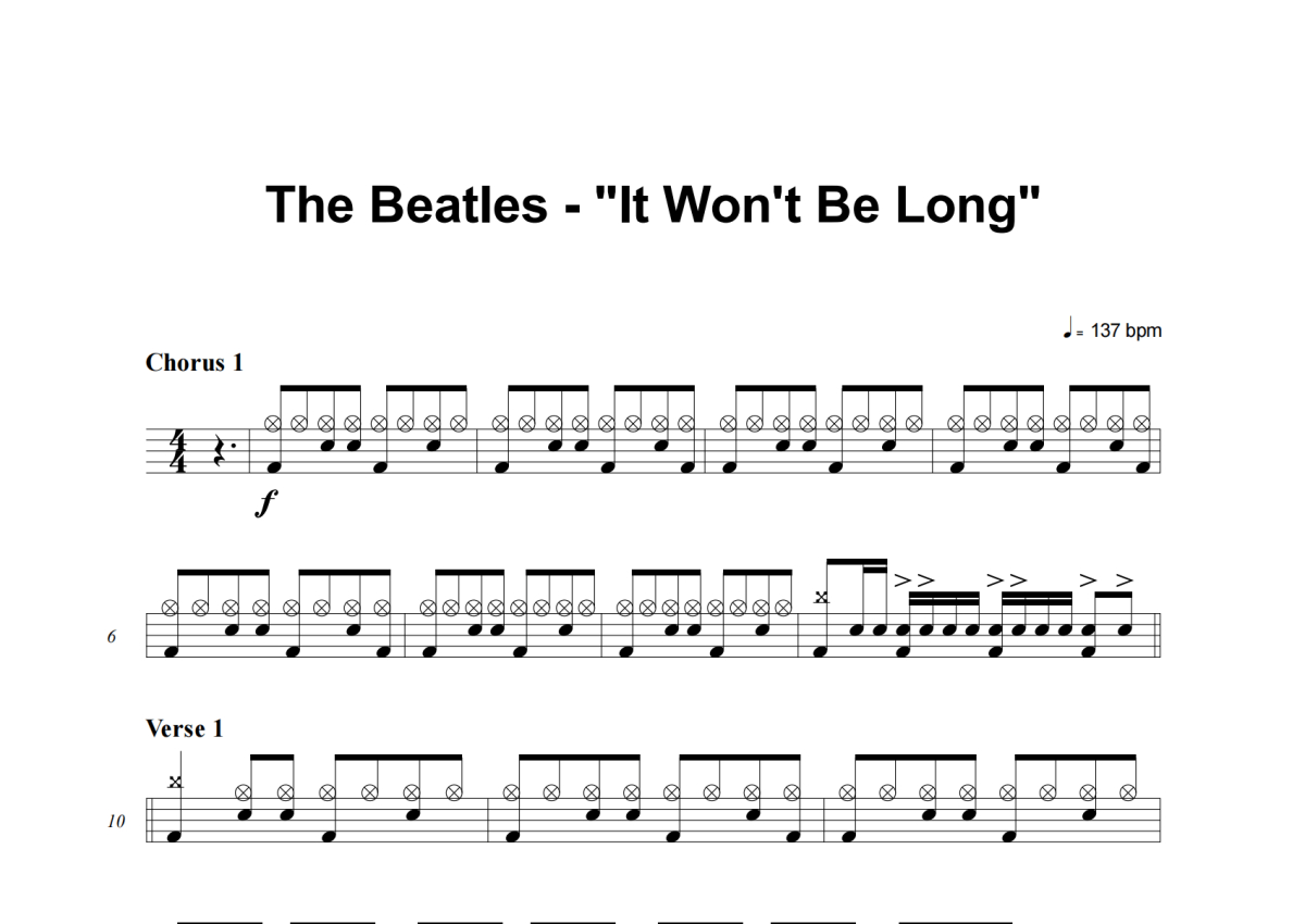 The Beatles《It Won't Be Long》架子鼓谱