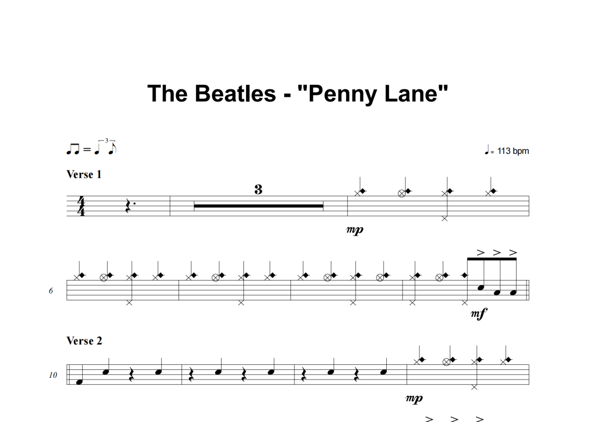 The Beatles《Penny Lane》架子鼓谱