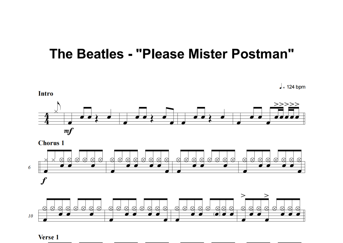 《Please Mister Postman》是The Beatles演唱的一首歌曲,这份架子鼓谱共有三张高清图谱,图谱由 @积极处世 编配上传,图谱使用五线谱编配,使用这份Please Mister Postman架子鼓谱,你将能够轻松地敲打出这首The Beatles的Please Mister Postman,快来尝试吧。