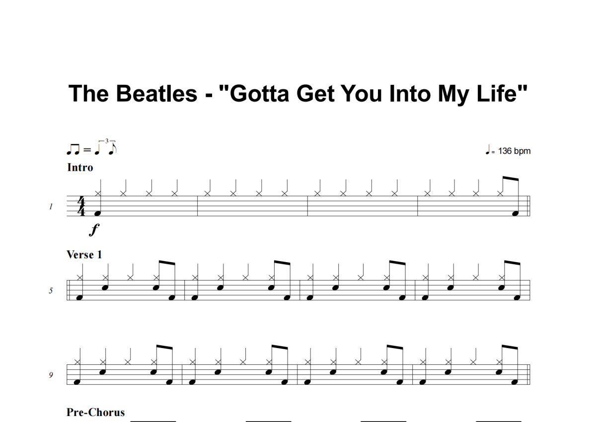 The Beatles《Got To Get You Into My Life》架子鼓谱
