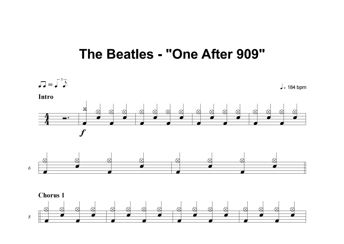 《One After 909》是The Beatles演唱的一首歌曲,这份架子鼓谱共有四张高清图谱,图谱由 @积极处世 编配上传,图谱使用五线谱编配,使用这份One After 909架子鼓谱,你将能够轻松地敲打出这首The Beatles的One After 909,快来尝试吧。