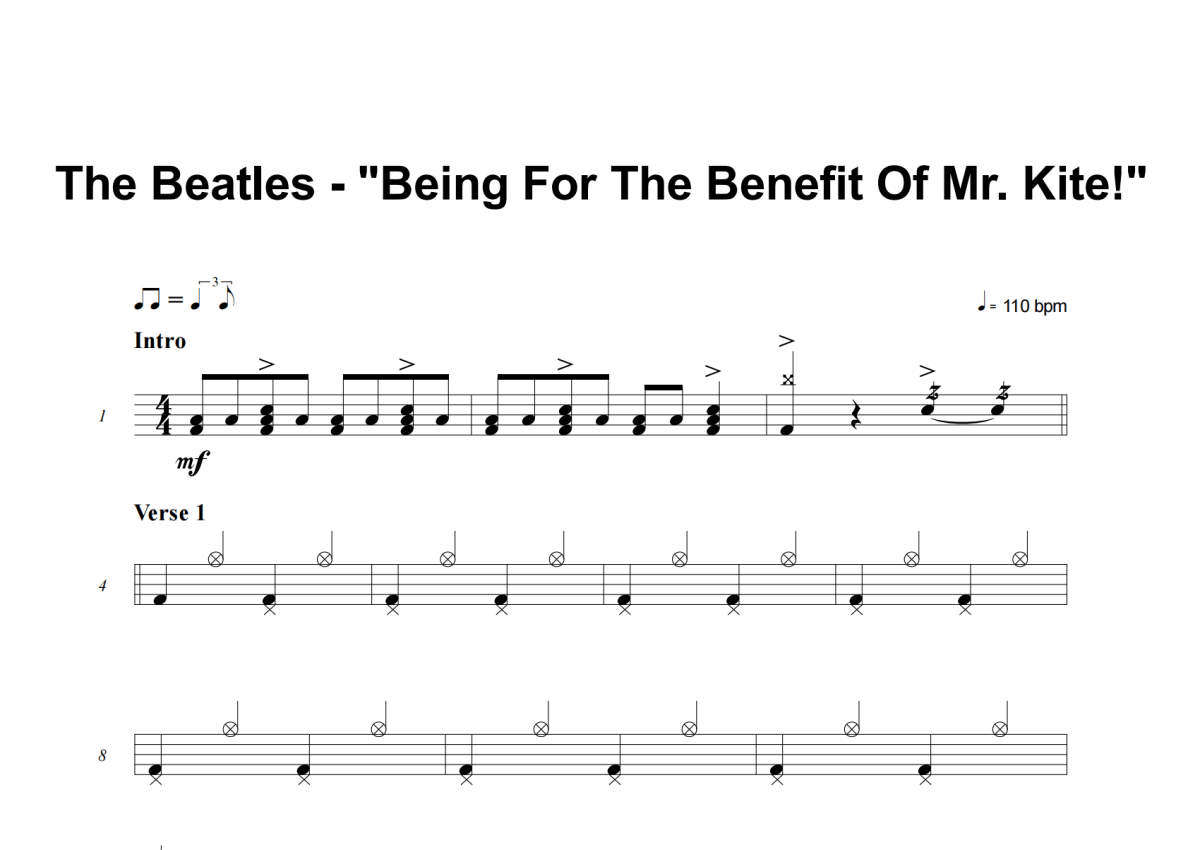 The Beatles《Being For The Benefit Of Mr. Kite!》架子鼓谱