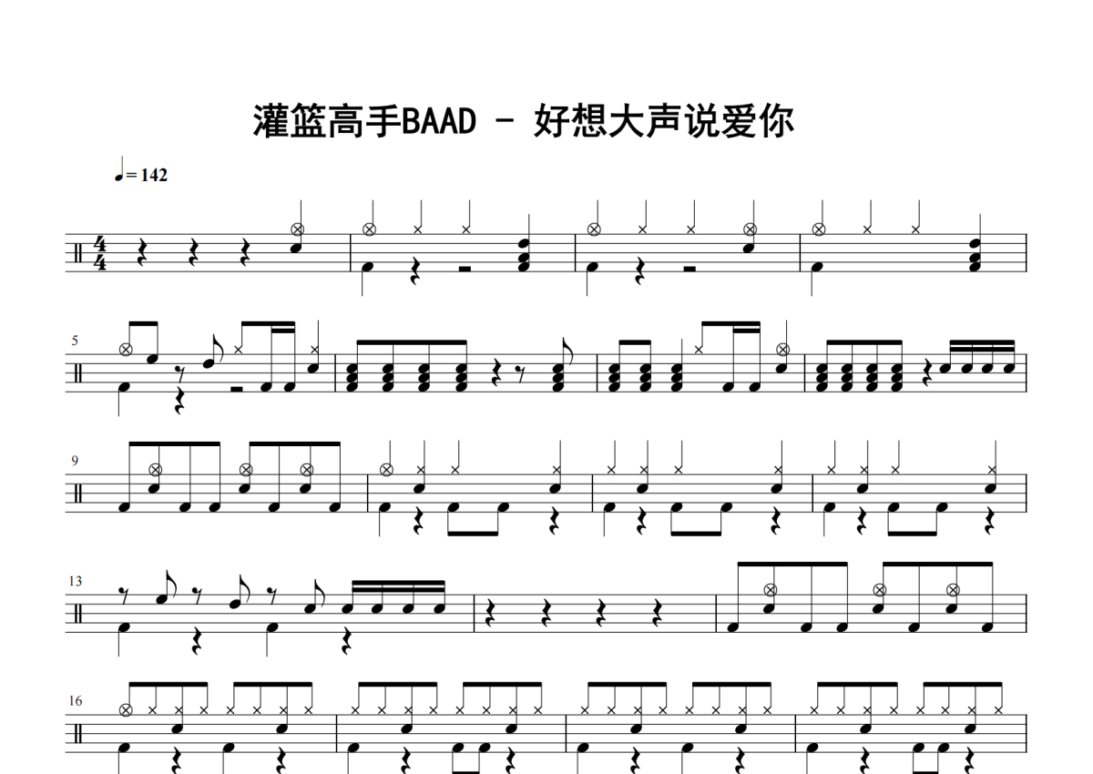 灌篮高手BAAD《好想大声说爱你》架子鼓谱