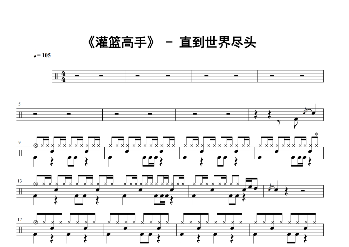 灌篮高手《直到世界尽头》架子鼓谱