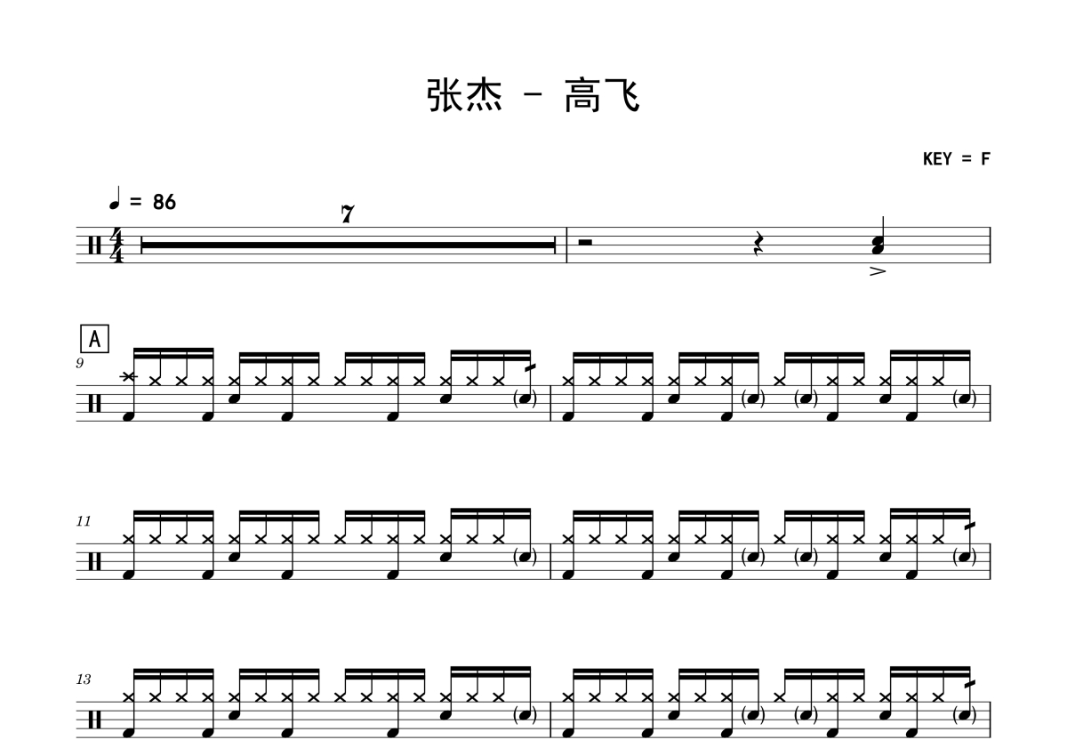 张杰《高飞》架子鼓谱