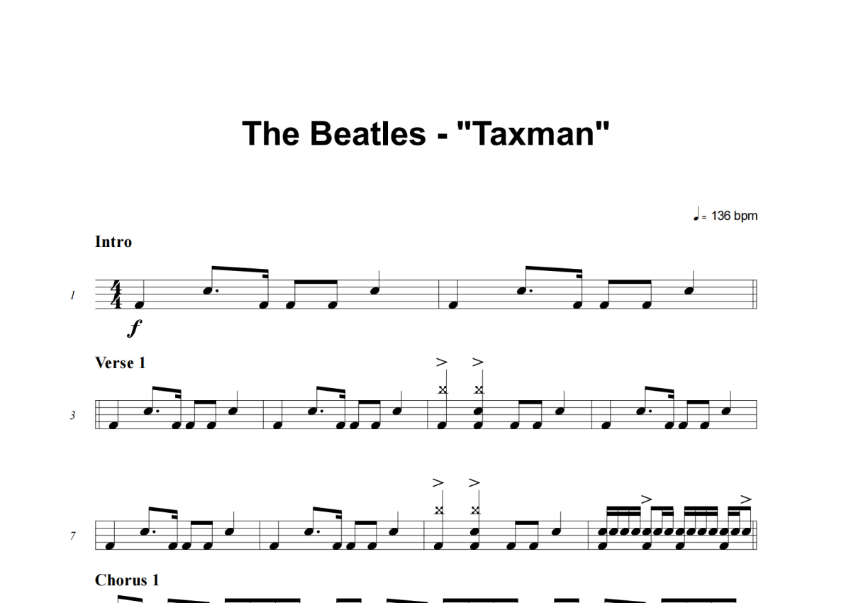 The Beatles《Taxman》架子鼓谱
