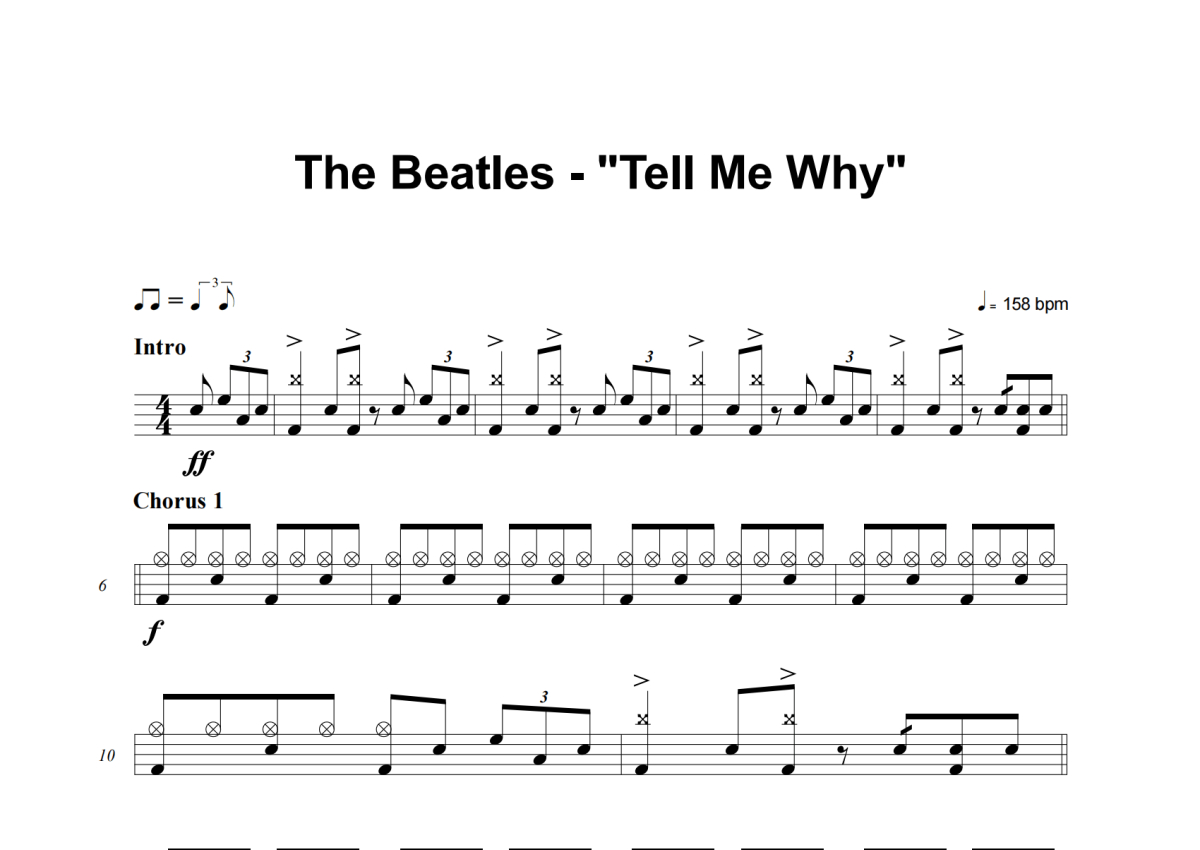 The Beatles《Tell Me Why》架子鼓谱