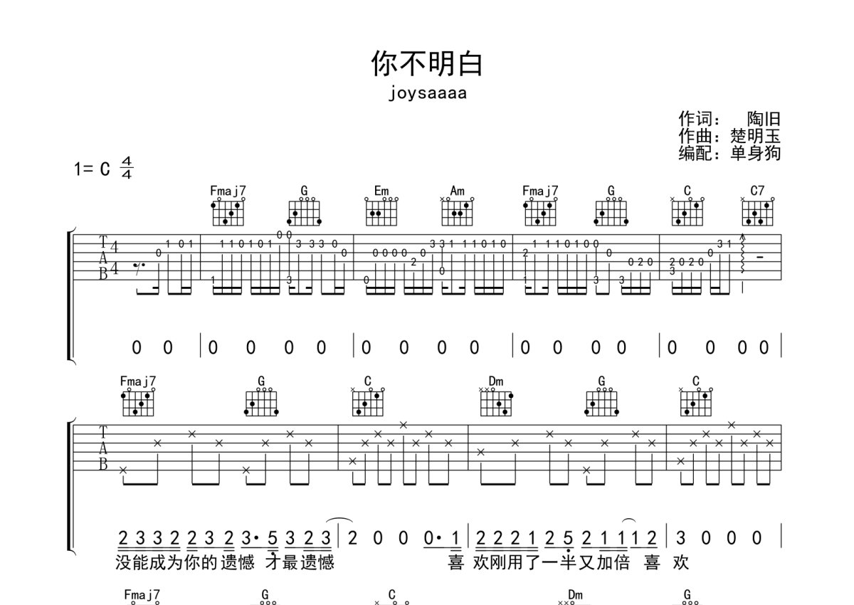 joysaaaa《你不明白》吉他谱 - C调弹唱六线谱