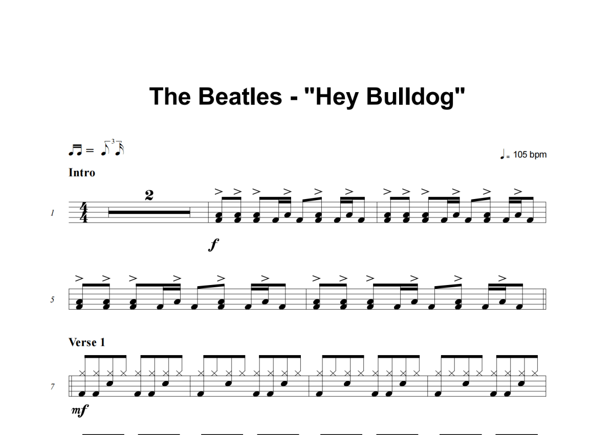 The Beatles《Hey Bulldog》架子鼓谱