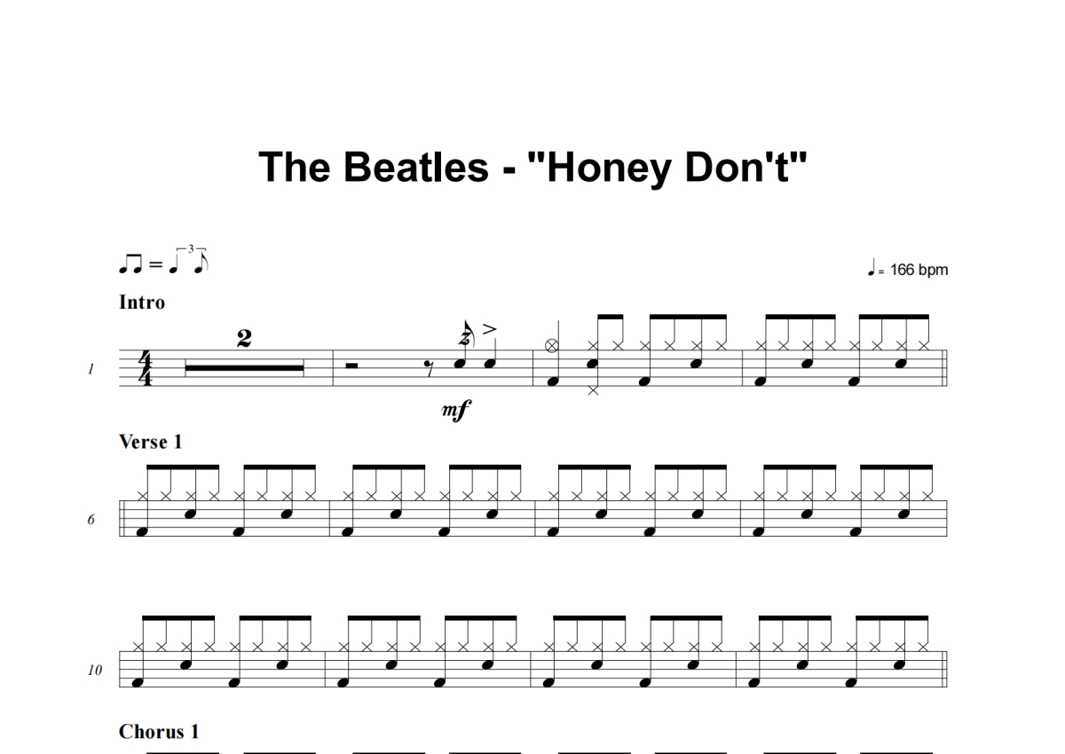 The Beatles《Honey Don't》架子鼓谱